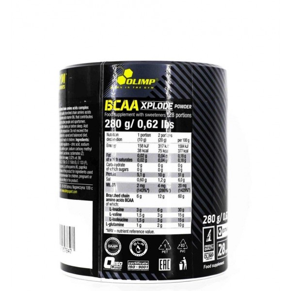 BCAA Xplode® — это не только идеальный строительный материал, он содержит аминокислоты, которые защитят ваши мышцы от катаболизма при приеме перед физической нагрузкой. При интенсивных физических тренировках происходит микроповреждение мышечной ткани и освобождающийся из нее белок в результате действия катаболических ферментов сжигается для энергетических целей, когда нет энергии из глюкозы. BCAA Xplode®, принимайте перед тренировкой, обеспечивает защиту мышечного белка от распада, поскольку аминокислоты в разветвленных боковых цепях трансформируются в глюкозу в мышцах и печени и могут использоваться в качестве альтернативного источника энергии. Высокий уровень BCAA в организме во время физической тренировки может вызвать снижение выработки сертонина в головном мозге, что помогает значительно уменьшить и отсрочить чувство центральной усталости. Если вы хотите тренироваться долго и интенсивно, но при этом защитить мышцы от разложения, BCAA Xplode® — идеальный продукт для вас! Для усиления антикатаболического действия препарата его состав обогащен достаточным количеством L-глютамина, который является вторым по важности ингредиентом для наращивания мышечной массы после аминокислот с разветвленными боковыми цепями.