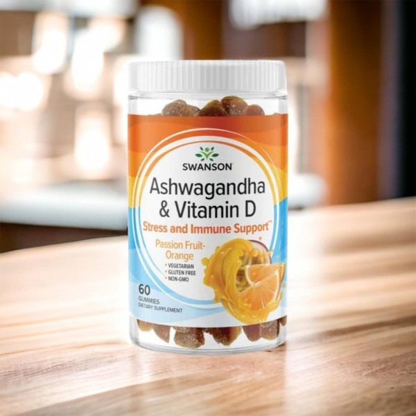 Жевательные мармеладки Swanson Ashwagandha & Vitamin D предлагают свежий подход к повседневному стрессу. Эти сочные жевательные таблетки со вкусом маракуйи и апельсина содержат это адаптогенное растение и витамин D, чтобы поддерживать спокойствие и расслабление.