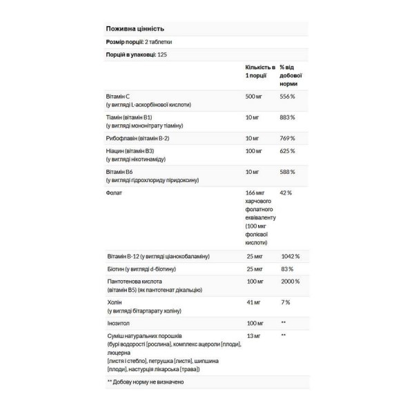 Обратите внимание, что B-Complex with Vitamin C Stress Formula - 250 tabs не является лекарственным средством. Не заменяет полноценное питание. Не превышайте рекомендуемую суточную дозу. Используйте согласно инструкции изготовителя, которая находится на упаковке или внутри нее.
