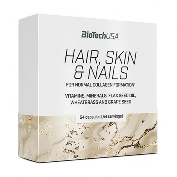 - Помимо витаминов и минералов, капсулы BioTechUSA Hair, Skin & Nails также содержат льняное масло, масло ростков пшеницы и виноградных косточек (проантоцианин).