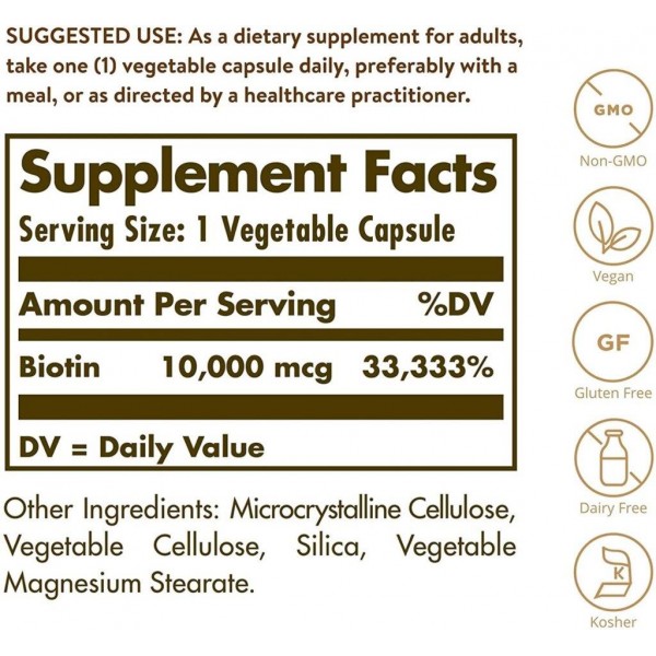 Biotin Super High Potency 10,000 mcg 60 Vegetable Capsules Solgar