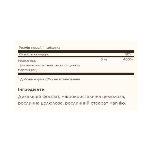Обратите внимание, что Chelated Manganese - 100 tabs не является лекарственным средством. Не заменяет полноценное питание. Не превышайте рекомендуемую суточную дозу. Используйте согласно инструкции изготовителя, которая находится на упаковке или внутри нее.