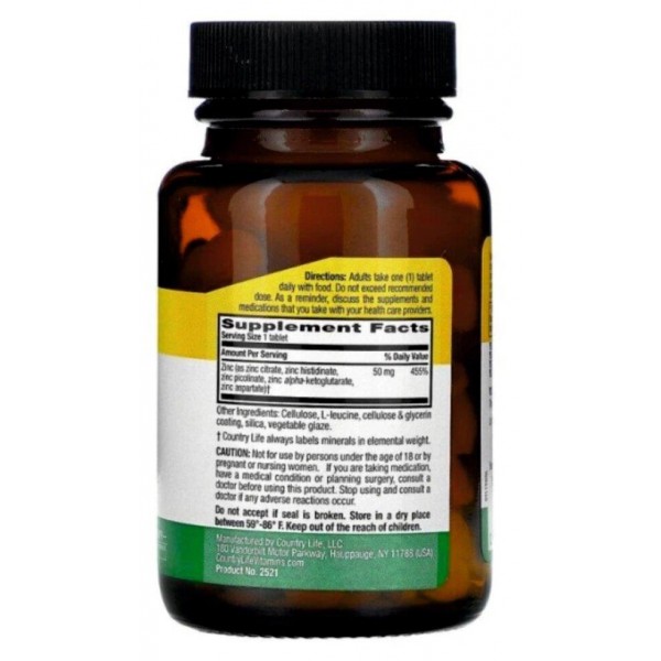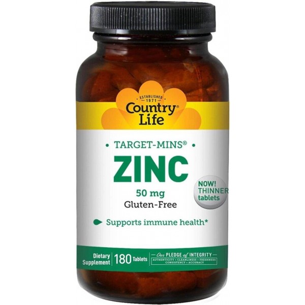 Цинк Country Life, Target-Mins "Zinc" – это минеральный компонент, выполняющий важные функции в организме человека. Он влияет на нормальный рост волос, ногтей, кожи и заживление ран, благоприятно влияет на зрение.