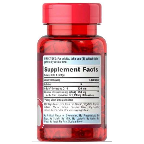 Co Q-10 (Q-SORB) plus Cinnamon 30 Rapid Release Softgels Puritan's Pride