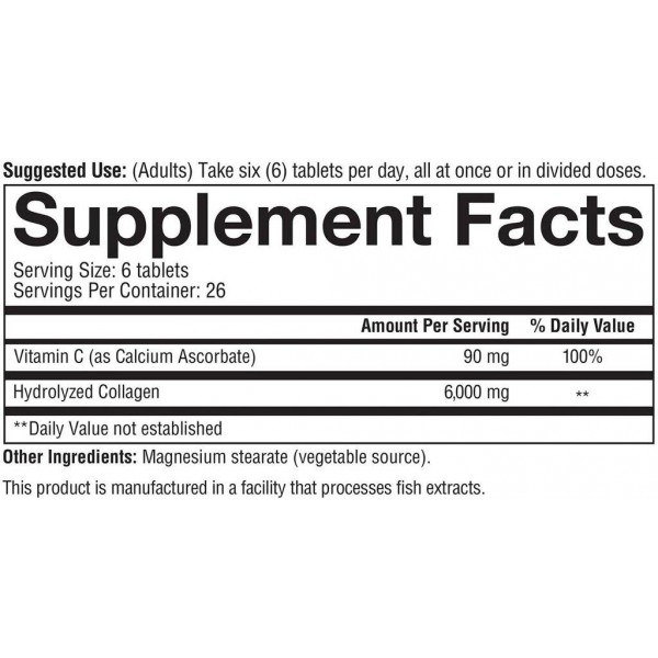 Обратите внимание, что Collagen, 6,000 mg 160 Tablets не является лекарственным средством. Не заменяет полноценное питание. Не превышайте рекомендуемую суточную дозу. Используйте согласно инструкции изготовителя, которая находится на упаковке или внутри нее.