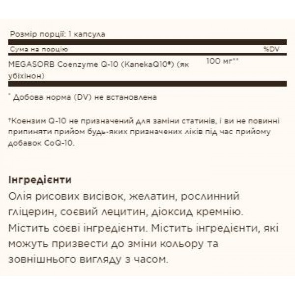 Обратите внимание, что CoQ10 100mg - 90 softgels не является лекарственным средством. Не заменяет полноценное питание. Не превышайте рекомендуемую суточную дозу. Используйте согласно инструкции изготовителя, которая находится на упаковке или внутри нее.