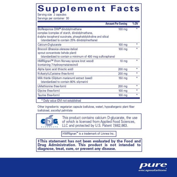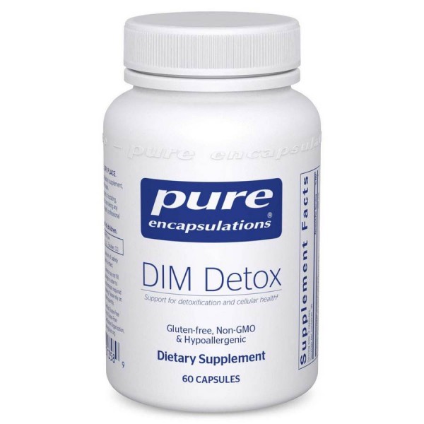 Дииндолилметановый комплекс (DIM) представляет собой растительный индол, который может иметь несколько преимуществ для здоровья. Хорошие диетические источники растительных индолов включают крестоцветные овощи, такие как брокколи, капуста, цветная капуста и брюссельская капуста; брокколи является особенно хорошим источником индол-3-карбинола. К сожалению, плотный график и обработанные полуфабрикаты могут не обеспечивать достаточное количество этих ингредиентов ежедневно; хотите верьте, хотите нет, чтобы достичь рекомендуемого уровня потребления, вам нужно съедать почти два фунта сырых овощей в день! Вот где может появиться DIM Detox от Pure Encapsulation.