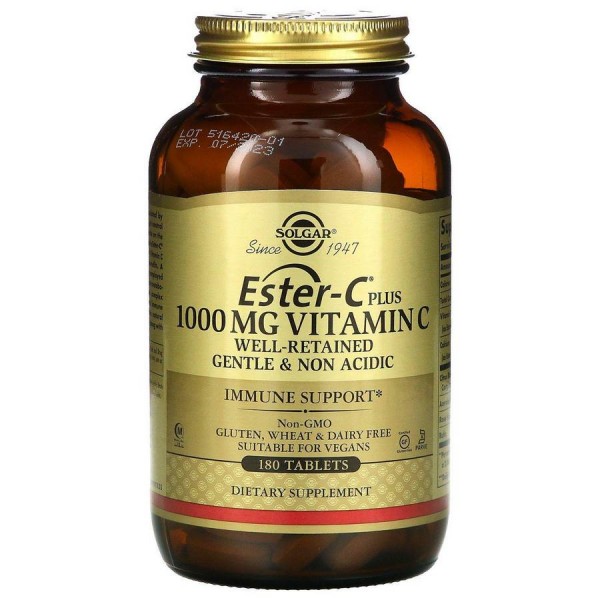 Ester-C Plus - это эксклюзивная формула, разработанная компанией Solgar и содержащая защищенный патентом витамин С с нейтральным pH (без повышенной кислотности), не вызывающим раздражение желудка. Метаболиты витамина С в составе Ester-C положительно влияют на устойчивость витамина С в клетках, обеспечивая дополнительный позитивный эффект. Для формирования уникального комплекса метаболита аскорбата кальция используется особый производственный процесс. Превосходный комплекс обеспечивает вас благотворными антиоксидантами, поддерживая иммунную систему, объединяя в себе натуральные биофлавоноиды и барбадосскую вишню, а также порошок плодов шиповника.