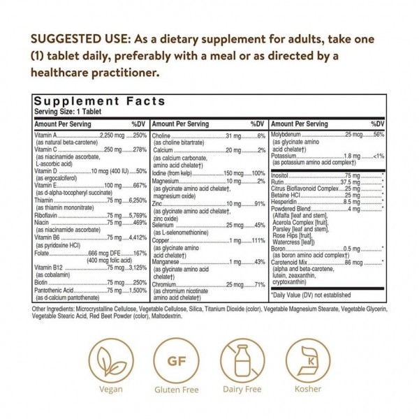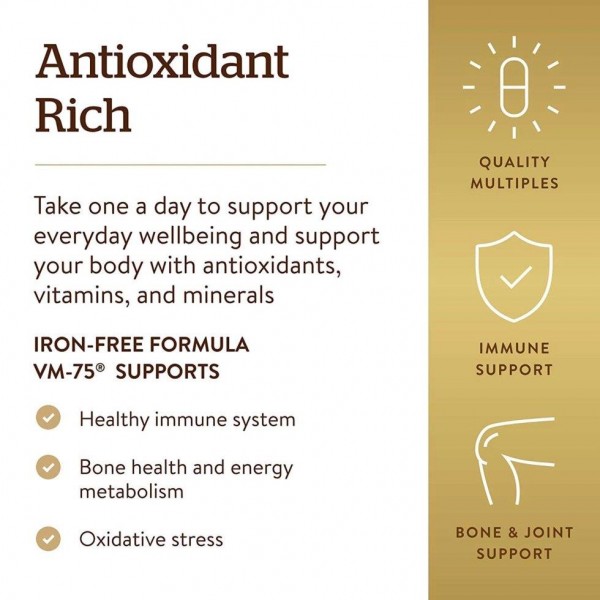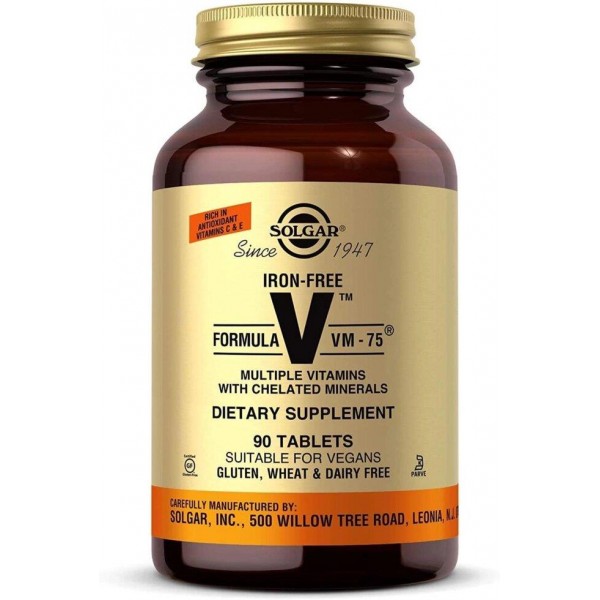 Formula V VM - 75 Iron-Free бренда Solgar – мультивитаминный комплекс с хелатными минералами без железа в ингредиентах. Комплекс содержит натуральные травы, витамины и минералы для всего организма.