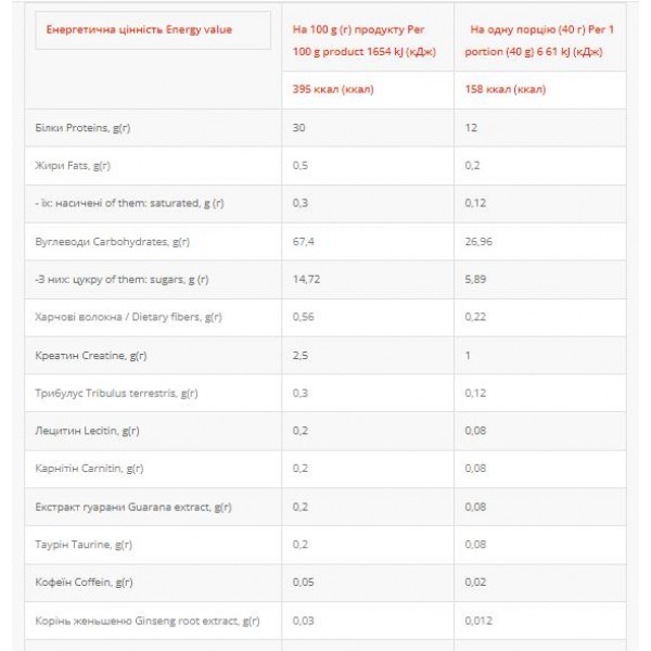 Power Pro Gainer это одна из лучших углеводно-белковых формул для тех, кто хочет набрать качественную мышечную массу. Ведь в отличие от остальных гейнеров, он не содержит жиры. В качестве углеводной основы лежат сложные углеводы. А основой белкового составляющего является матрица голландского протеина Friesland Campina, которая состоит из трех компонентов. Как применять: Смешать 1 порцию (40г) с 300 мл воды или молока. Принимать 1-3 порций в день, желательно перед и после тренировки. А так же в течение дня, между основными приемами пищи.