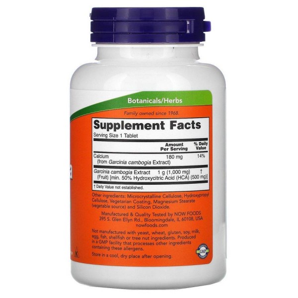 NOW Garcinia представляет собой стандартизованную 50%-ую гидроксилимонную кислоту с гарантированным и проверенным содержанием 500 мг кислоты на таблетку.