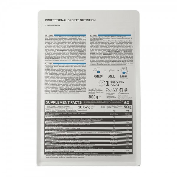 OstroVit Carbo это пищевая добавка с углеводами высочайшего качества, которая характеризуется очень коротким временем усвоения.