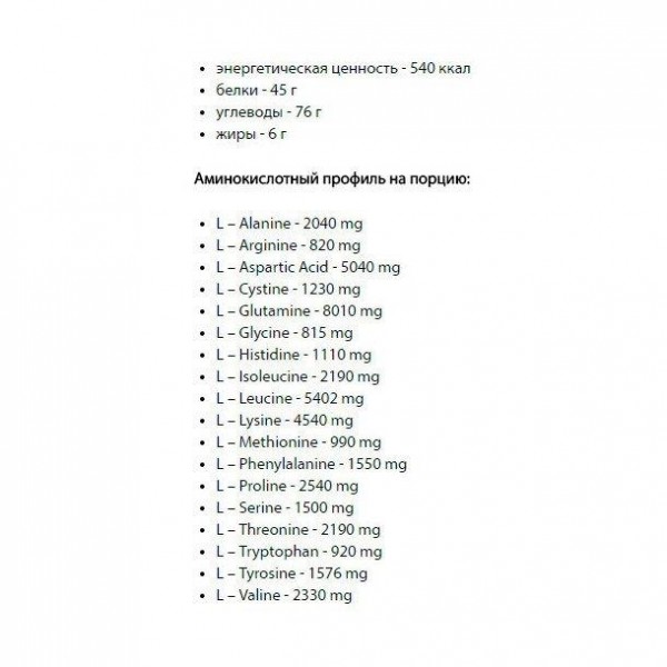 Аминокислотный состав на 1 порцию = 100 грамм