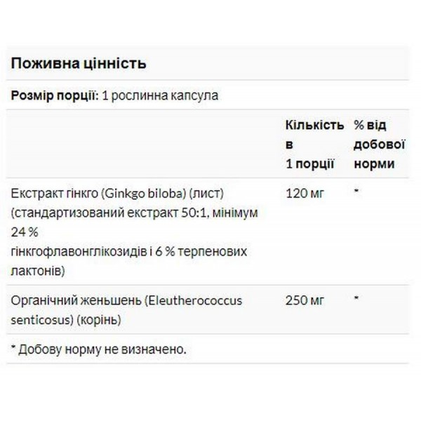 Обратите внимание, что Ginkgo Biloba 120mg - 50 vcaps не является лекарственным средством. Не заменяет полноценное питание. Не превышайте рекомендуемую суточную дозу. Используйте согласно инструкции изготовителя, которая находится на упаковке или внутри нее.
