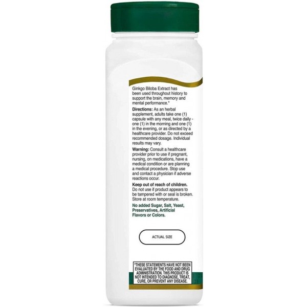 Обратите внимание, что Ginkgo Biloba Extract, 60 mg 200 Veg Caps 21st Century не является лекарственным средством. Не заменяет полноценное питание. Не превышайте рекомендованную суточную дозу. Используйте согласно инструкции производителя, которая указана на упаковке или внутри нее.