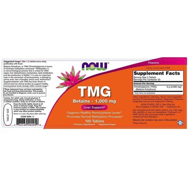 TMG Betaine 1000 mg 100 tabs NOW