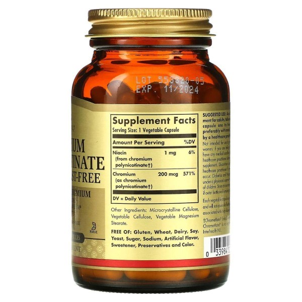 Хром полиникотинат Solgar (Chromium Polynicotinate) 200 мкг 100 вегетарианских капсул