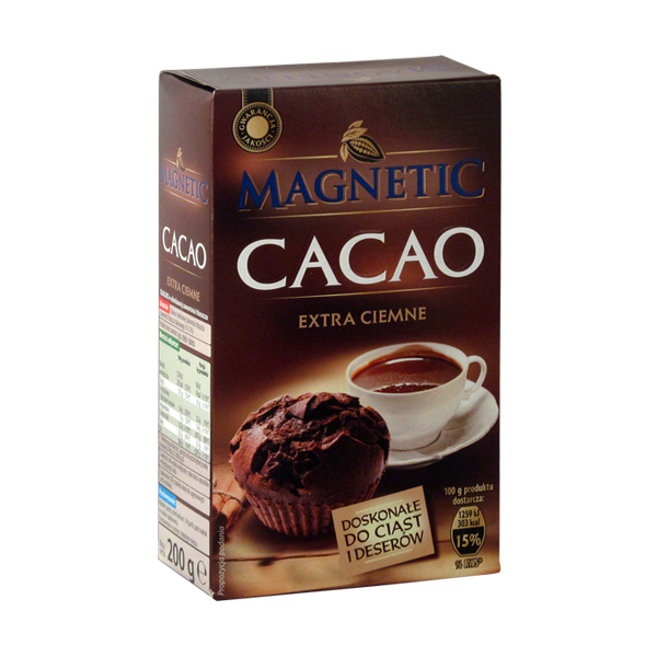 Magnetic cacao expa ciemne 200 г - это натуральный экстра темный какао-порошок, который поможет в создании вкусных десертов и напитков. Кроме большого количества полезных свойств, он имеет интенсивный аромат и насыщенный вкус. Чтобы получить мировую известность, технологи используют в производстве исключительно высококачественные компоненты, которые делают какао по-настоящему вкусным и ароматным. Сырье закупается на лучших плантациях Южной Америки. После сбора урожая, семена какао высушивается по специальной технологии, после чего перемалывается в порошок. Стоит отметить, что какао очень полезно для организма человека, так как в нем находится множество витаминов и минералов, которые укрепляют иммунную систему человека. Производитель: Польша. Упаковка - картонная пачка.