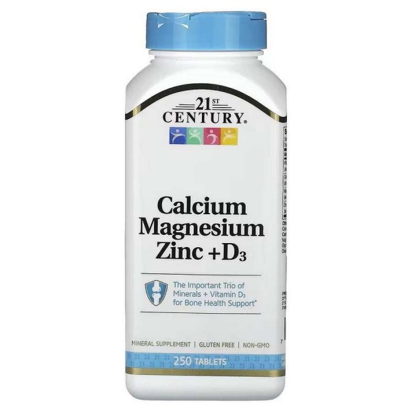 21st Century Calcium Magnesium Zinc + D3 — кальций, магний и цинк в сочетании с витамином Д3 в удобной таблетированной форме. Эти вещества необходимы для нормальной работы иммунной системы, укрепления скелета и улучшения общего самочувствия. Добавка подходит не только спортсменам, но и всем физически активным людям.