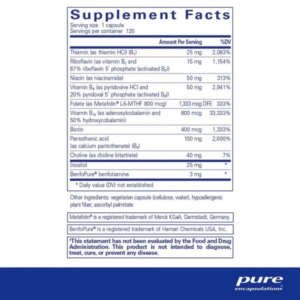 Комплекс витаминов группы B Pure Encapsulations (PureGenomics B-Complex) 120 капсул