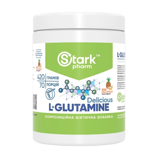 Значительные физические нагрузки и стрессовые факторы в разы увеличиваются потребность организма в глютамине, чем и обусловлена польза его приема в виде пищевых добавок. Глютамин Stark Pharm представлен в форме порошка с разными вкусами, такими как мультифрукт, тропический бум и ягодный пунш.