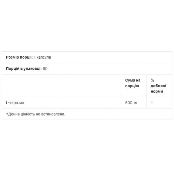 Обратите внимание, что L-Tyrosine 500mg - 60 veg caps не является лекарственным средством. Не заменяет полноценное питание. Не превышайте рекомендуемую суточную дозу. Используйте согласно инструкции изготовителя, которая находится на упаковке или внутри нее.