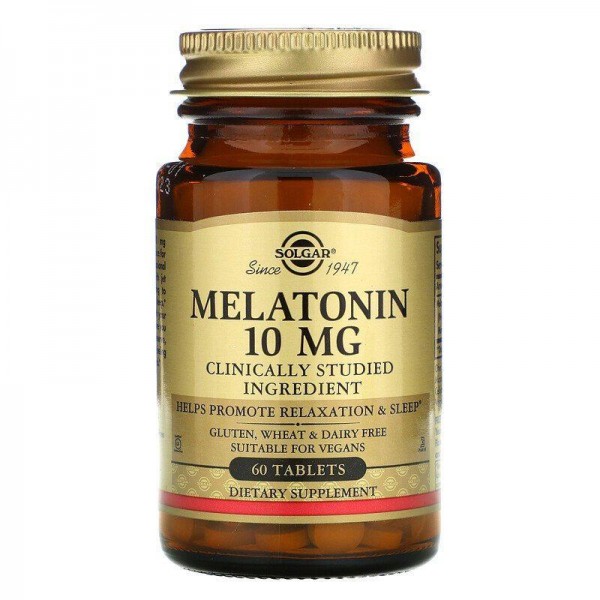 Melatonin от Solgar — это добавка на основе мелатонина в дозировке 10 мг, предназначенная для включения в рацион взрослых в периоды, связанные с изменением графика сна или нарушением циркадных ритмов. Мелатонин — это эндогенное соединение, синтезируемое шишковидной железой, которое ассоциировано с регуляцией сна и биологических циклов. Формула от Solgar выпускается в виде таблеток с высокой концентрацией активного вещества, что делает продукт удобным для кратковременного или курсового приёма.