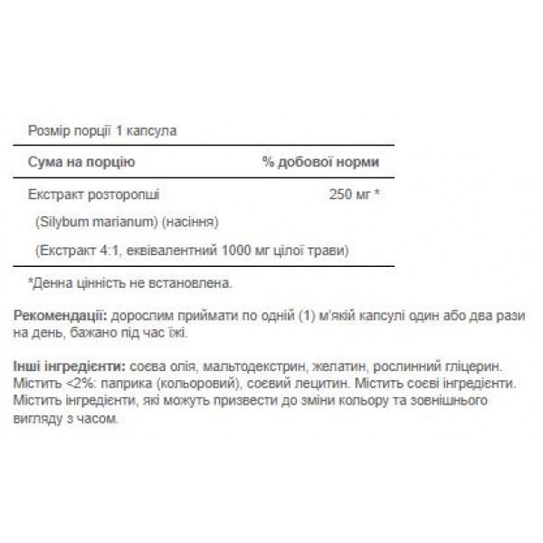 Обратите внимание, что Экстракт расторопши, Milk Thistle 4:1 Extract 1000mg - 90softgels. не является лекарственным средством. Не заменяет полноценное питание. Не превышайте рекомендуемую суточную дозу. Используйте согласно инструкции изготовителя, которая находится на упаковке или внутри нее.
