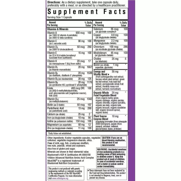 Maxi One, With Iron – насыщенная формула различными микроэлементами с содержанием железа. Она содержит критические питательные вещества, которые практически невозможно в нужном количестве получить из продуктов питания. Также она обеспечивает питательные вещества в биодоступных формах, что значительно повышает их усвояемость организмом.