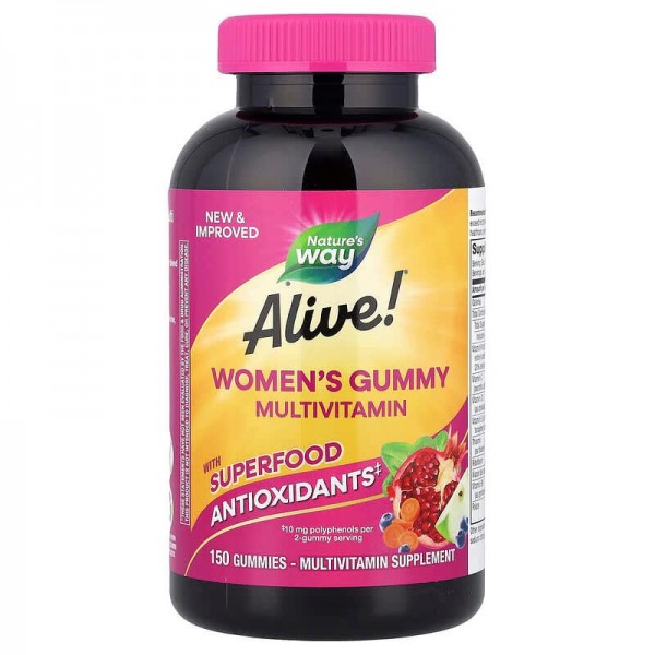 Alive! Women's Gummy Multivitamin от Nature's Way — это жевательные витамины с ягодным вкусом, созданные для женщин, чтобы дополнить их ежедневный рацион необходимыми питательными веществами. Комплекс включает витамины, минералы и антиоксиданты, полученные из натуральных источников, таких как фрукты и овощи. Продукт разработан с учетом потребностей женского организма и имеет удобную форму жевательных конфет.