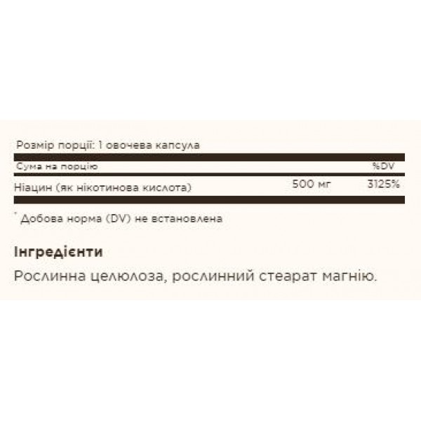 Ниацин/витамин B3 является водорастворимым витамином и входит в состав комплекса B. Он необходим для метаболизма углеводов и белка в энергии. Ниацин также поддерживает здоровье сердечно-сосудистой системы, улучшает кровообращение и поддерживает здоровье нервной системы.