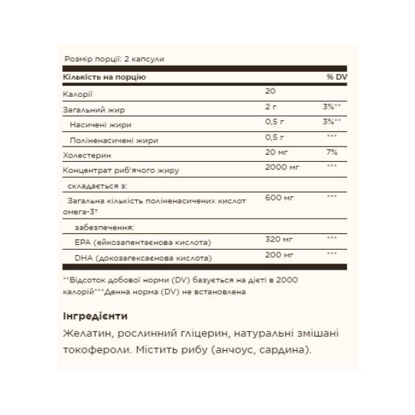Эта формула — это природный концентрированный источник жирных кислот омега-3 ЭПК и ДГК из глубоко- и холодноводных рыб. ЭПК и ДГК поддерживают здоровье сердечно-сосудистой системы, суставов и нормальный обмен веществ. Рыбий жир в этой формуле проверен на оптимальную чистоту. Он подвергается молекулярной дистилляции для очищения от ртути.