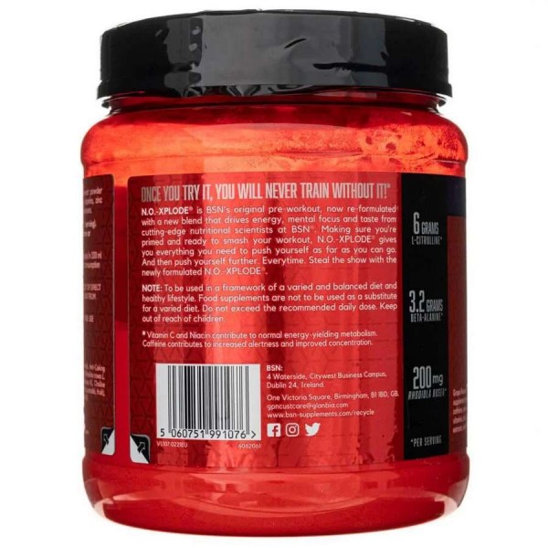 No-Xplode 390g (Purple) BSN – это популярный предтренировочный комплекс, разработанный для повышения энергии, силы, выносливости и концентрации во время тренировок. Он содержит комбинацию ингредиентов, способствующих улучшению производительности и достижению лучших результатов.