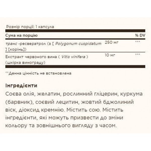 - Высокая концентрация ресвератрола: Каждая капсула содержит 250 мг ресвератрола для максимального эффекта.