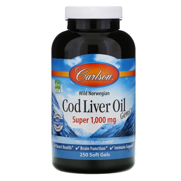 Cod Liver Oil Gems Super 1,000 содержит 1000 мг рыбьего жира из печени трески — 250 мг кислот омега-3, плюс витамины A и D3. ЭПК и ДГК в омега-3 поддерживает сердечно-сосудистую, когнитивную и иммунную функции. Источником Cod Liver Oil Gems является высококачественная взятая из природы норвежская треска, вылавливаемая традиционными экологичными методами.