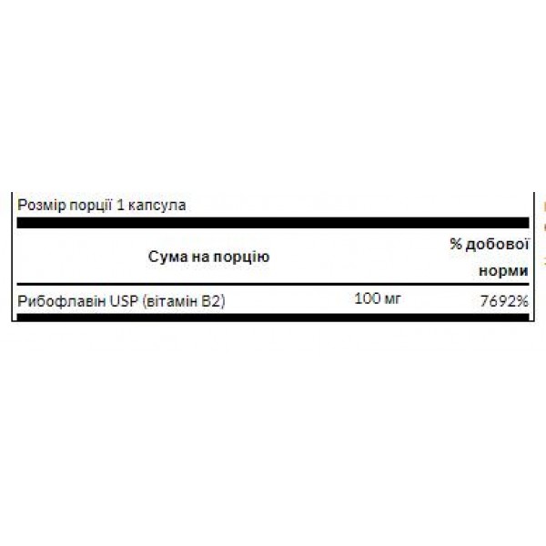 - Содержит 100 мг витамина B-2 (рибофлавина) в каждой капсуле.