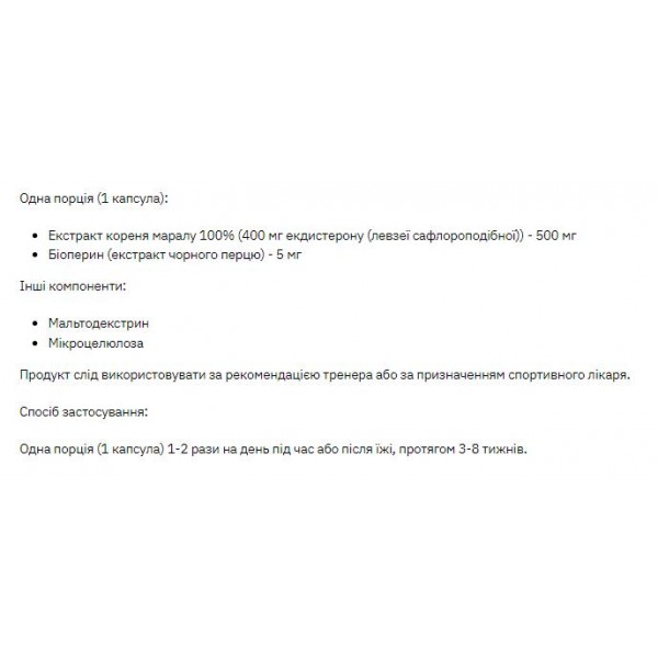 Натуральный экстракт, но с мощнейшим действием для любого атлета. Помогает качественно нарастить мышечную массу, как ан*болические пр*параты (не стоит сравнивать действие), но без последствий для здоровья. В ходе исследований показало, что люди принимающие экдистерон увеличили показатели выносливости, силы и получили сухую мышечную массу. Способ приема: Рекомендуемая доза экдистерона составляет 80-120 мг в сутки.