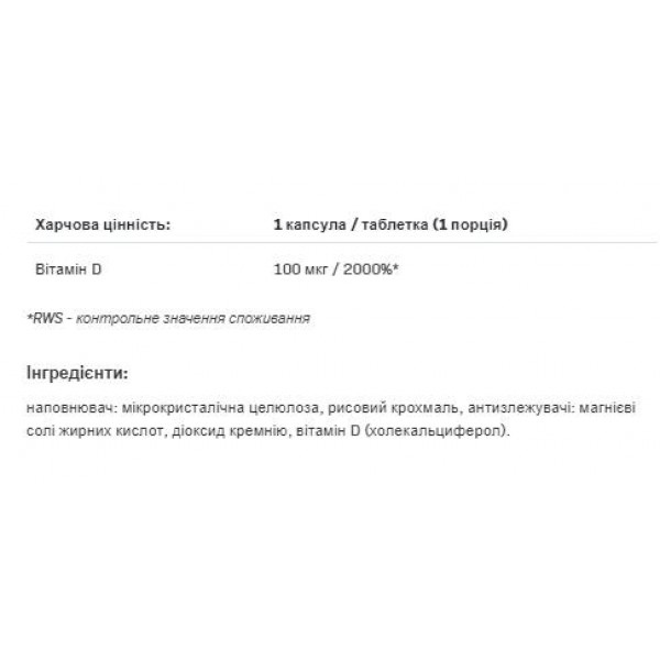 Состав: Продукт содержит 4000 МЕ витамина D3 (холекальциферол), что обеспечивает высокоэффективную поддержку организма.