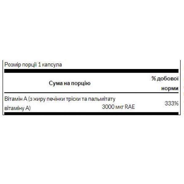 Обратите внимание, что Витамин А, Vitamin A 10,000 IU - 250 Softgels не является лекарственным средством. Не заменяет полноценное питание. Не превышайте рекомендуемую суточную дозу. Используйте согласно инструкции изготовителя, которая находится на упаковке или внутри нее.
