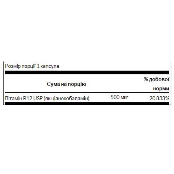 - Содержит 500 мкг витамина B12 в каждой капсуле.