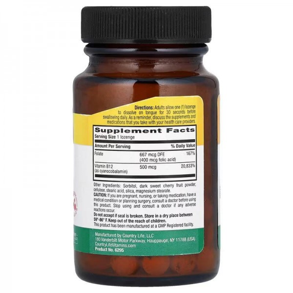 Country Life Vitamin B12 with Folate – это идеальный выбор для поддержания энергии, здоровья кровеносной системы и общего самочувствия в соответствии с высокими стандартами качества.