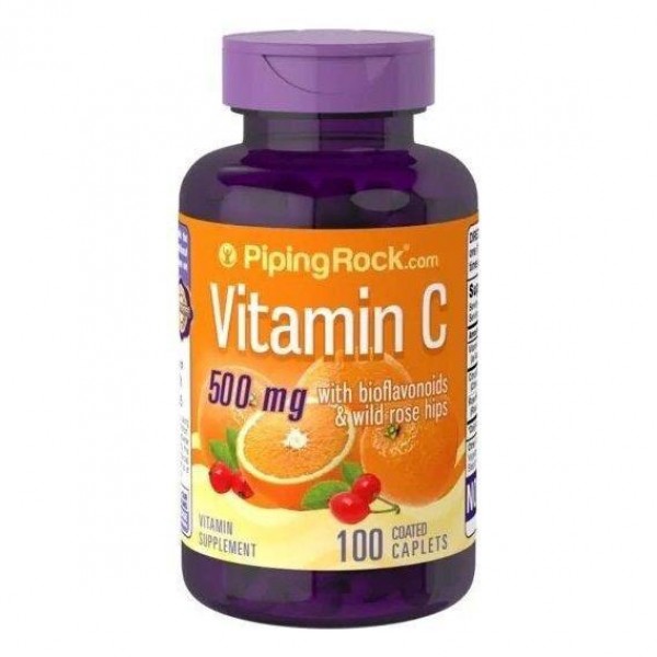 Vitamin C 500 mg with Bioflavonoids & Rose Hips 100 Coated Caplets Piping Rock