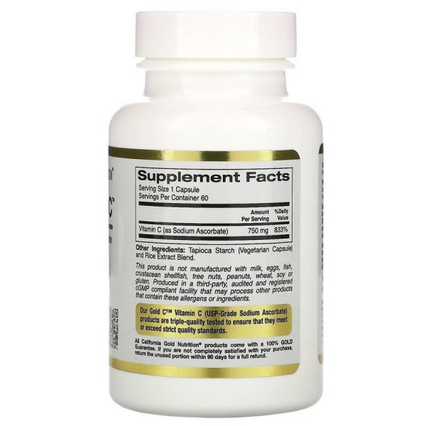 California Gold Nutrition® Капсулы Buffered Gold C производятся в США и соответствуют или даже превосходят все качественные и количественные характеристики контроля качества: