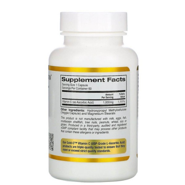 Витамин C California Gold Nutrition (Gold C Vitamin C) 1000 мг 60 вегетарианских капсул