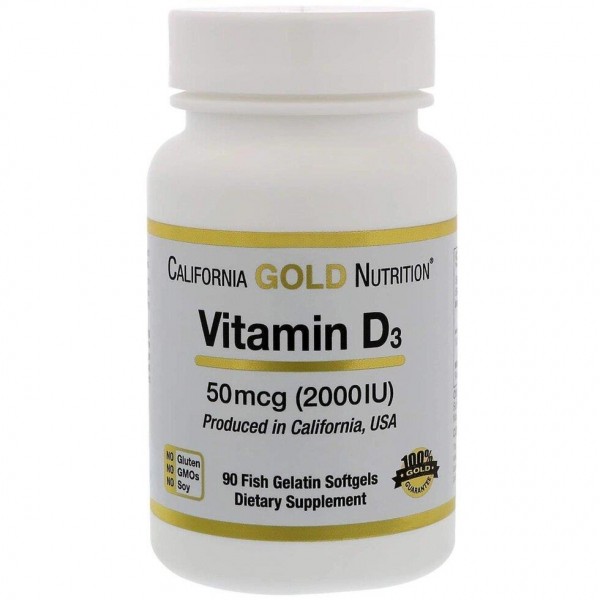 Vitamin D3 50 mcg (2000 IU) от компании California Gold Nutrition – добавка с витамином D3 витамин D3 в виде холекальциферола из ланолина в мягких гелевых капсулах из рыбьего желатина для крепких костей и иммунной системы.
