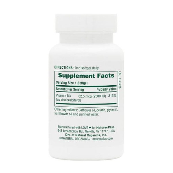 Витамин Д3, Vitamin D3 2500 IU - 90 softgels Nature's Plus