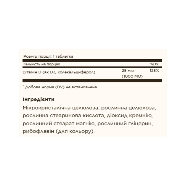 Vitamin D3 (Cholecalciferol) 25 mcg (1000 IU) - 180 tabs Solgar
