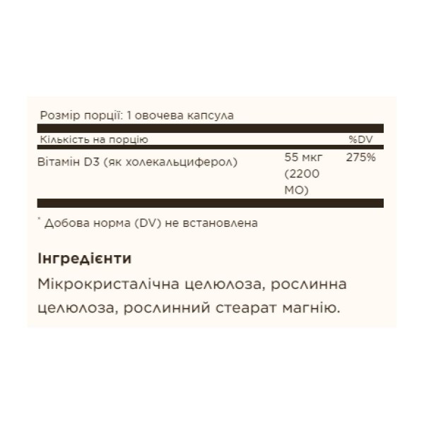 Vitamin D3 (Cholecalciferol) 55 mcg (2200 IU) - 100 vcaps Solgar