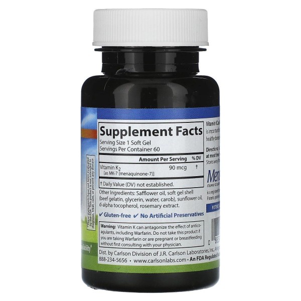 Витамин K2 MK-7 Carlson Labs (Vitamin K2 as MK-7) 90 мкг 60 желатиновых капсул