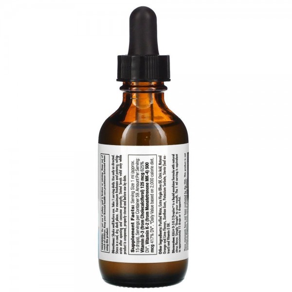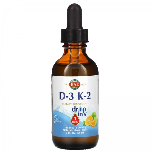 Описание: KAL D-3 K-2 DropIns — жидкая эмульсия со вкусом натурального цитруса. Просто капли в рот. Порция 1 мл составляет примерно 15 капель или содержимое полной пипетки.